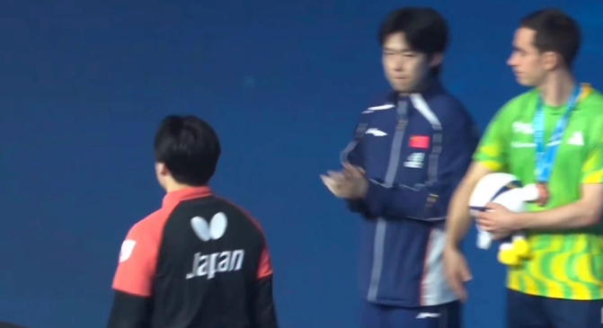在颁奖仪式上,松岛辉空和并列第三名的雨果、林昀儒握手之后,他本应该主动和王楚钦握手,可是哪怕王楚钦一边为他鼓掌,可是松岛辉空不仅没有伸手 ,甚至连看都没有看王楚钦,他拒绝和王楚钦的握手。