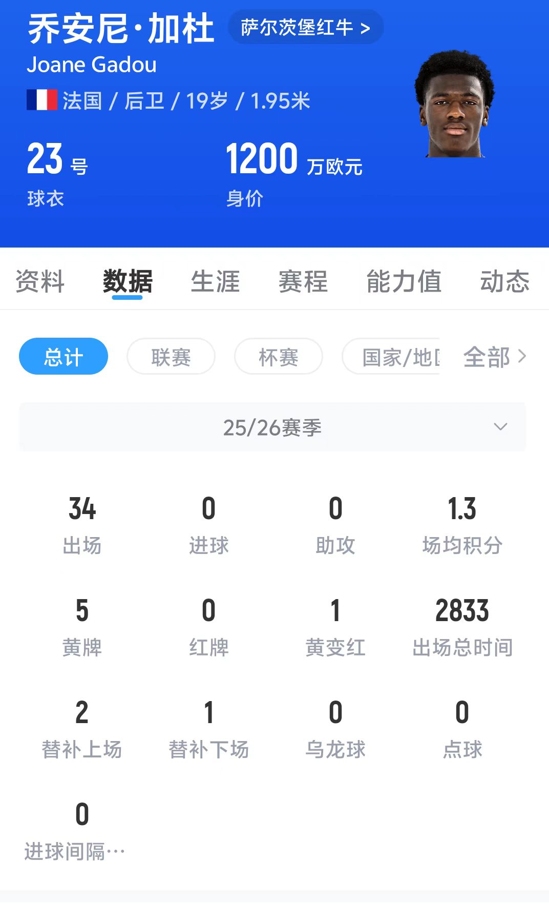据《图片报》报道,萨尔茨堡红牛队的乔安尼·加杜仍然是引援目标。他是一位极具潜力的年轻球员。目前代表萨尔茨堡红牛出场34次,目前身价1200万欧元。